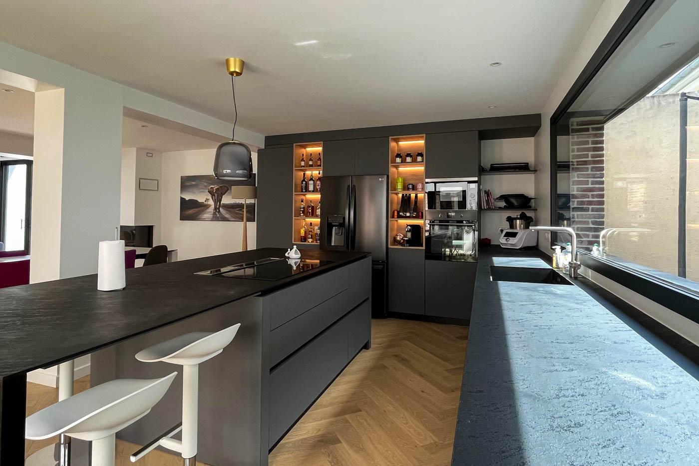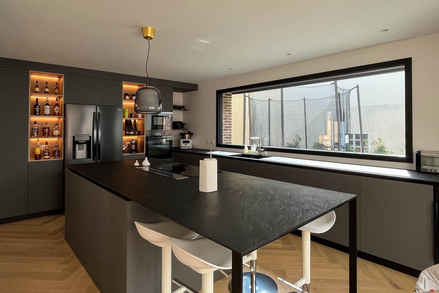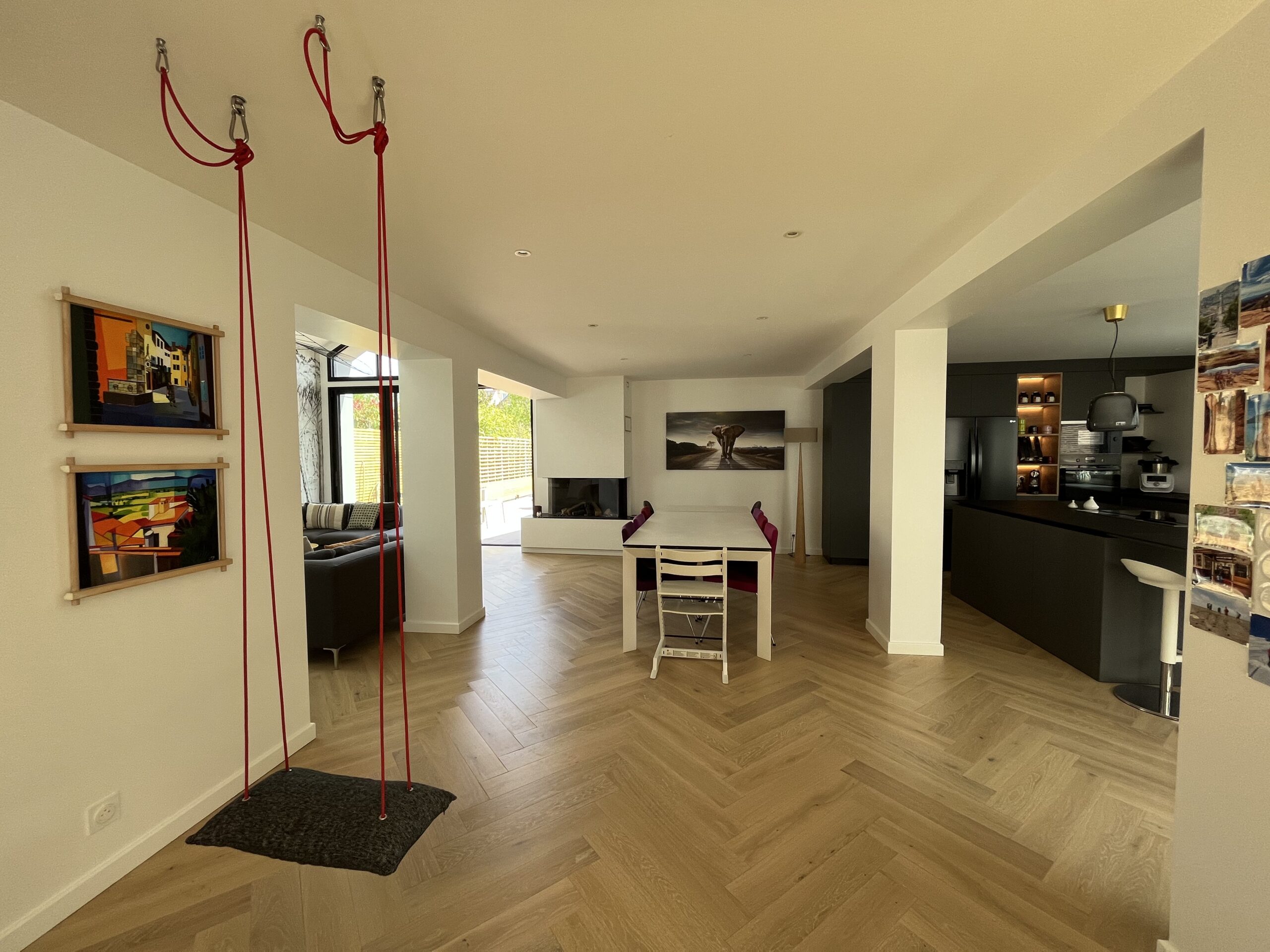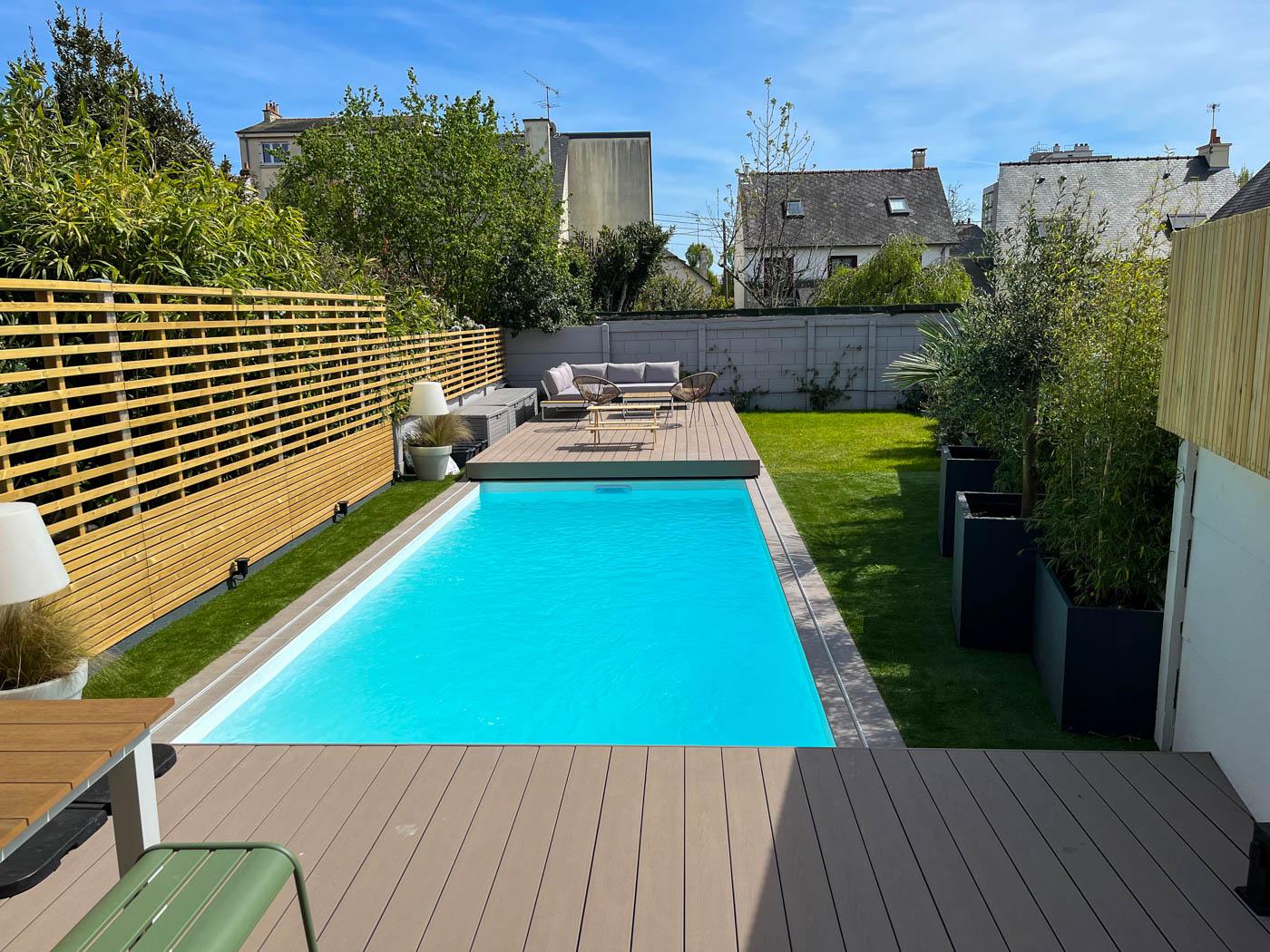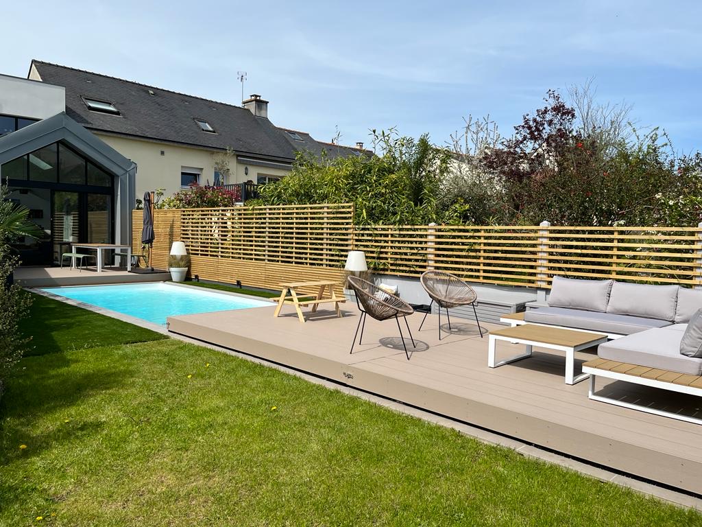 Implanté au cœur d’un tissu urbain résidentiel dense à Rennes, ce projet de maison individuelle avec studio indépendant s’articule dans une volumétrie fragmentée. Pour intégrer l’ensemble du programme dans le respect du règlement local d’urbanisme, nous avons combiné différentes hauteurs et matérialités, organisant les espaces de vie autour d’un patio central. Ce dispositif architectural favorise l’apport de lumière naturelle au centre de l’habitation tout en préservant l’intimité d’une piscine intégrée. Cette conception bioclimatique optimise les usages et les flux, offrant une réponse contemporaine à la densification du centre-ville.